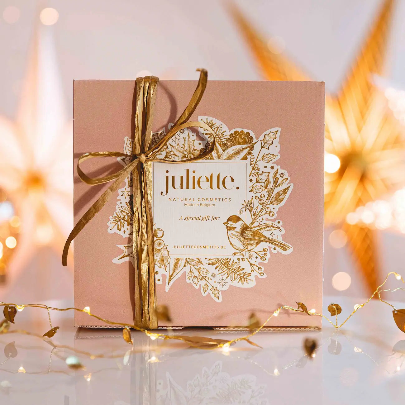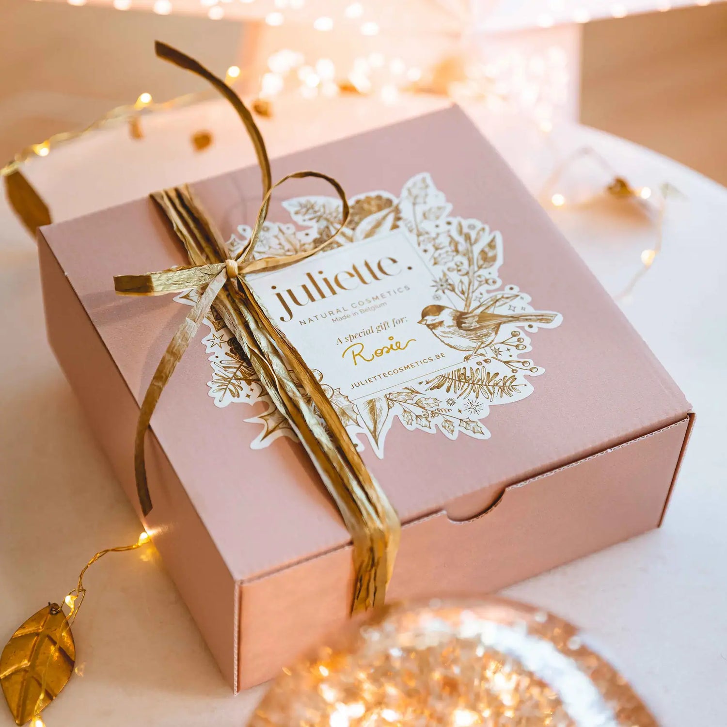 Pour célébrer Noël, juliette. offre un nouveau scintillement précieux à vos cadeaux. À cette occasion, nos iconiques écrins se parent d’un ruban doré éclatant.