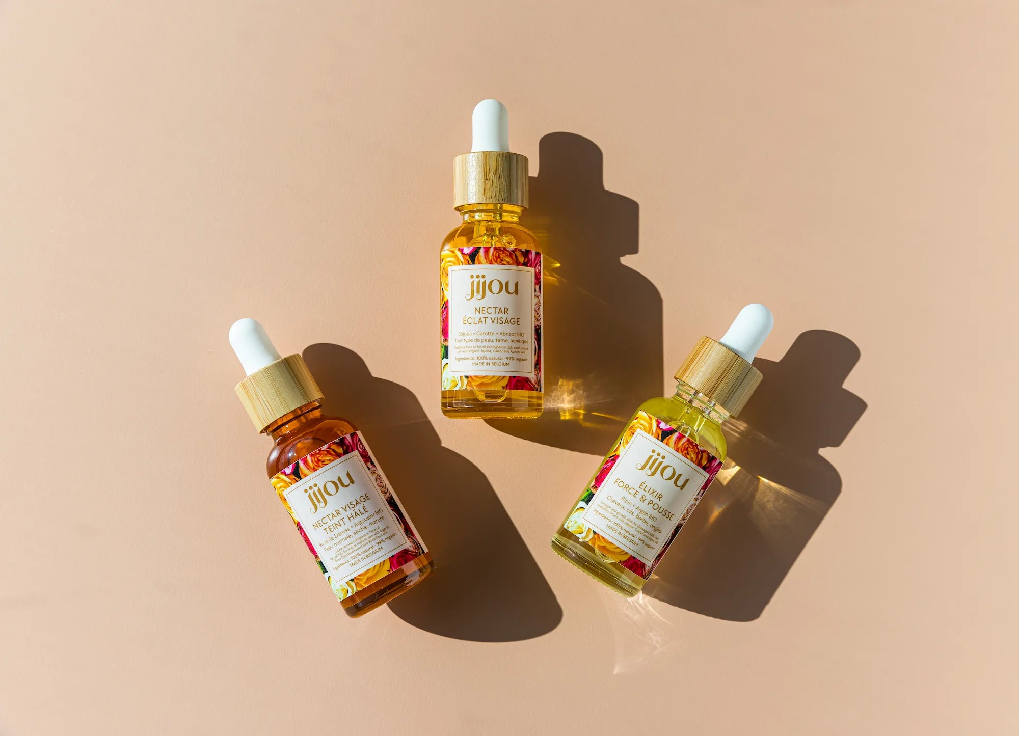 Nos packagings sont composés, autant que possible, de matériaux issus de sources non fossiles telles que le verre, le carton, le plastique recyclé (RPET), ou la canne à sucre.